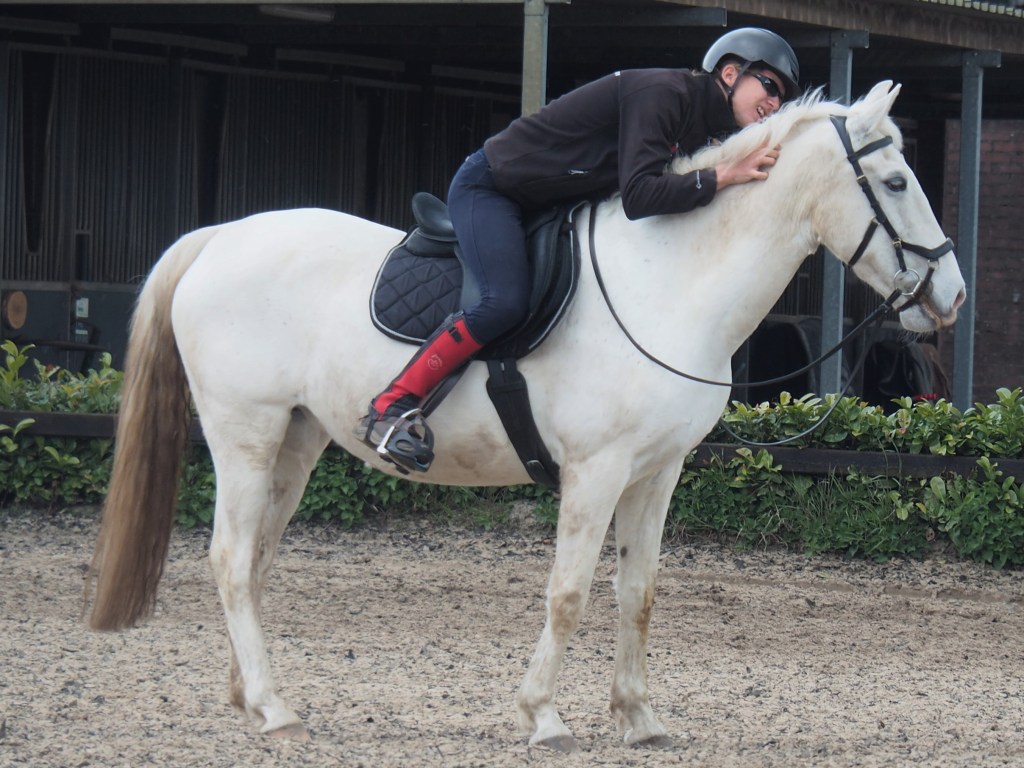 I also help her owner with riding her. It is nice to be able to practice giving horseriding instructions with a horse I ride myself. And to train with her the things I notice they need practice in so they will become a great combination.