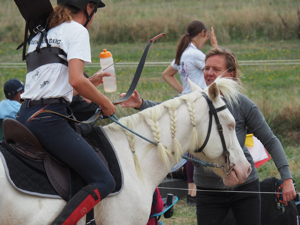Last week I rode the European Championship Horseback Archery Eventing in Gauchoux, France. I was very lucky that Sylvie Recoussine brought Husky for me to ride! On wednesday I trained with Husky. The Tower targets had been lowered 40 cm since last competition so I had to adjust my shooting to that. Wojtek also gave me a very valuable jumping lesson so I was confident enough to jump in the Hunt track. During the competition I shared Husky with Emrah Koç from Turkey.