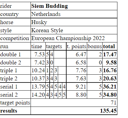 The second day of competition we rode the Raid 235. I am very happy with my results, 135.45 points, a new world record and enough get my HA8 grade!