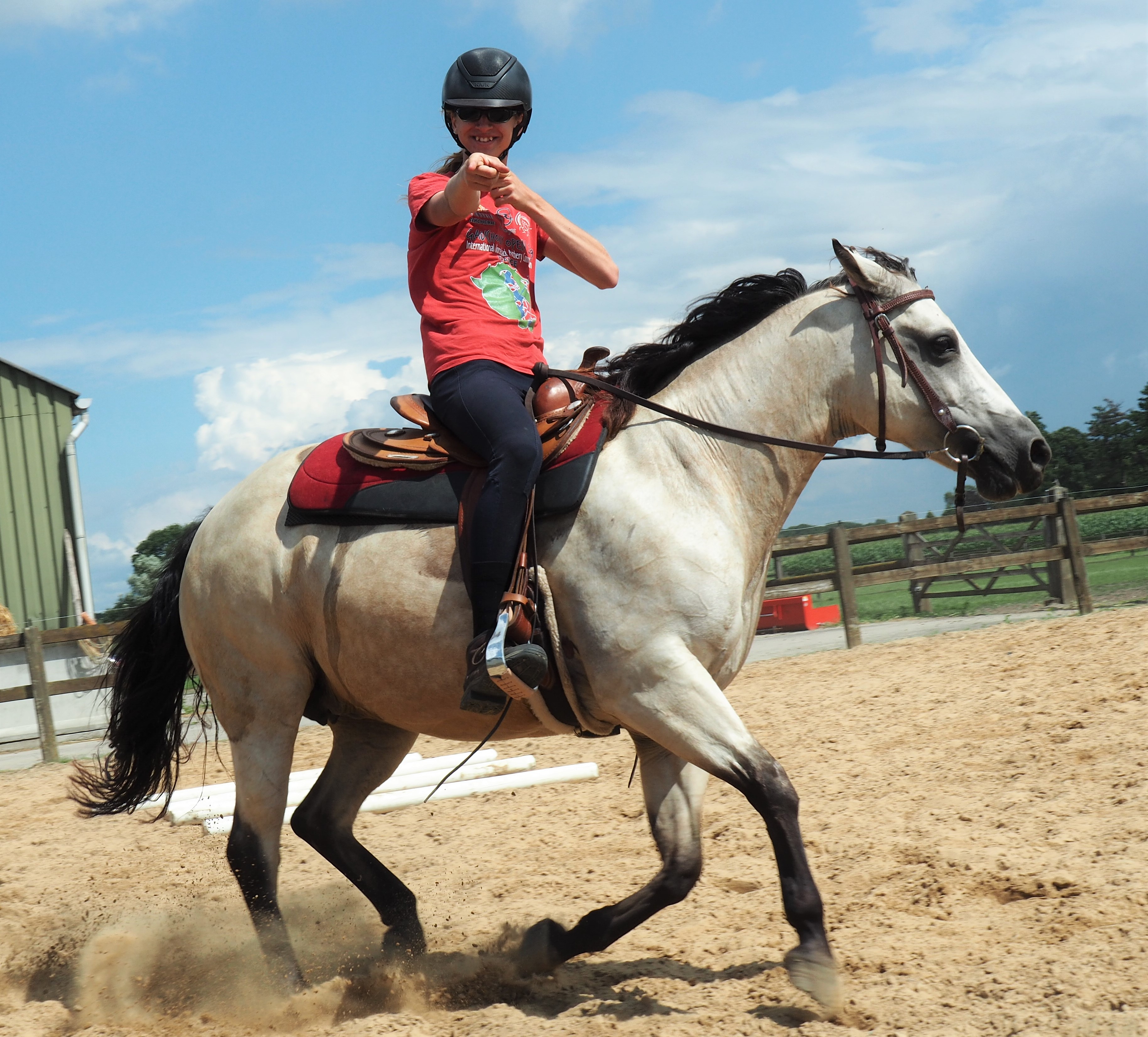 In March 2017 I decided to start horseriding again because I wanted to become a horseback archer. We found Speedy and his owner Veronique. She taught me things about natural horsemanship.