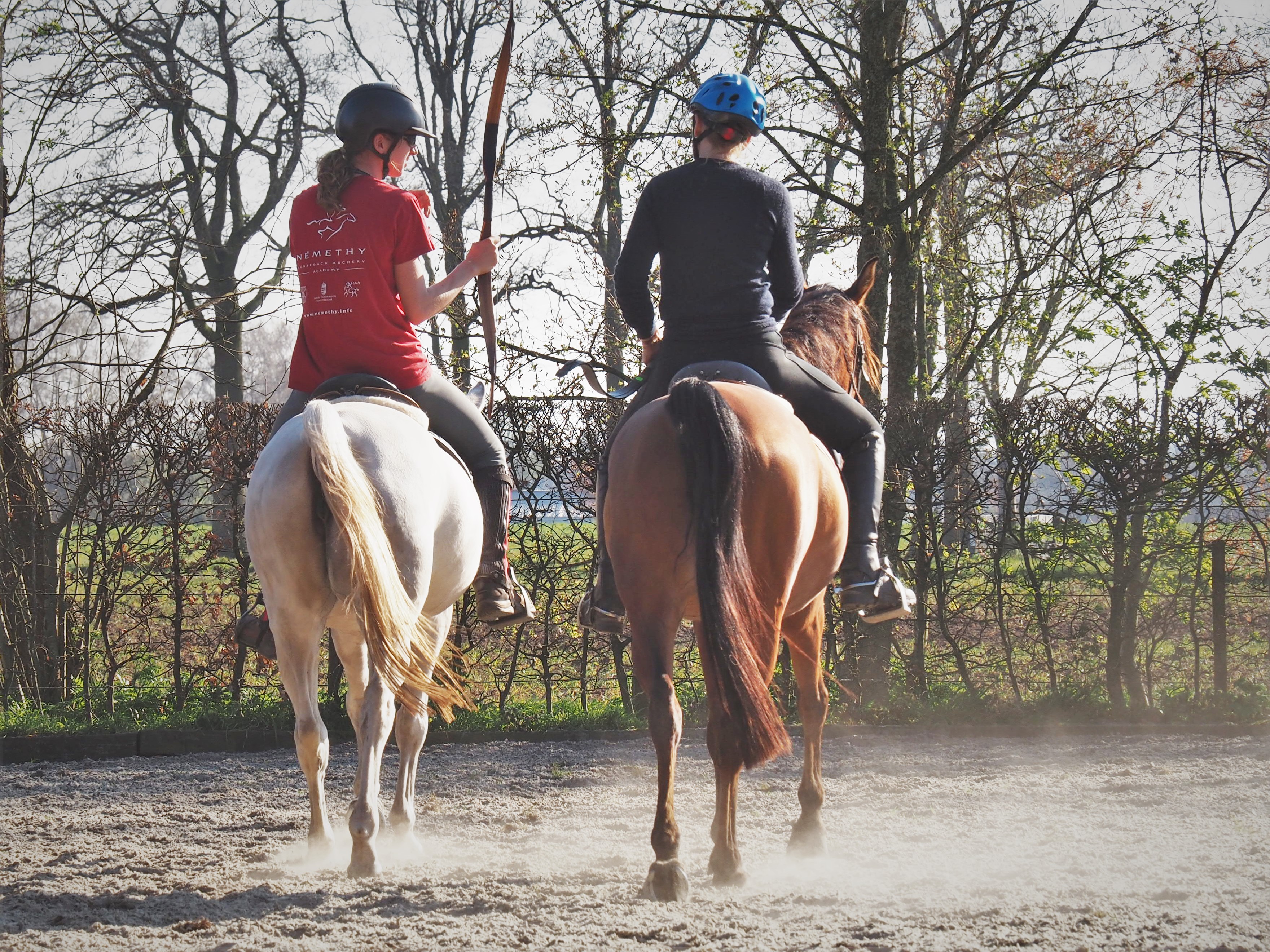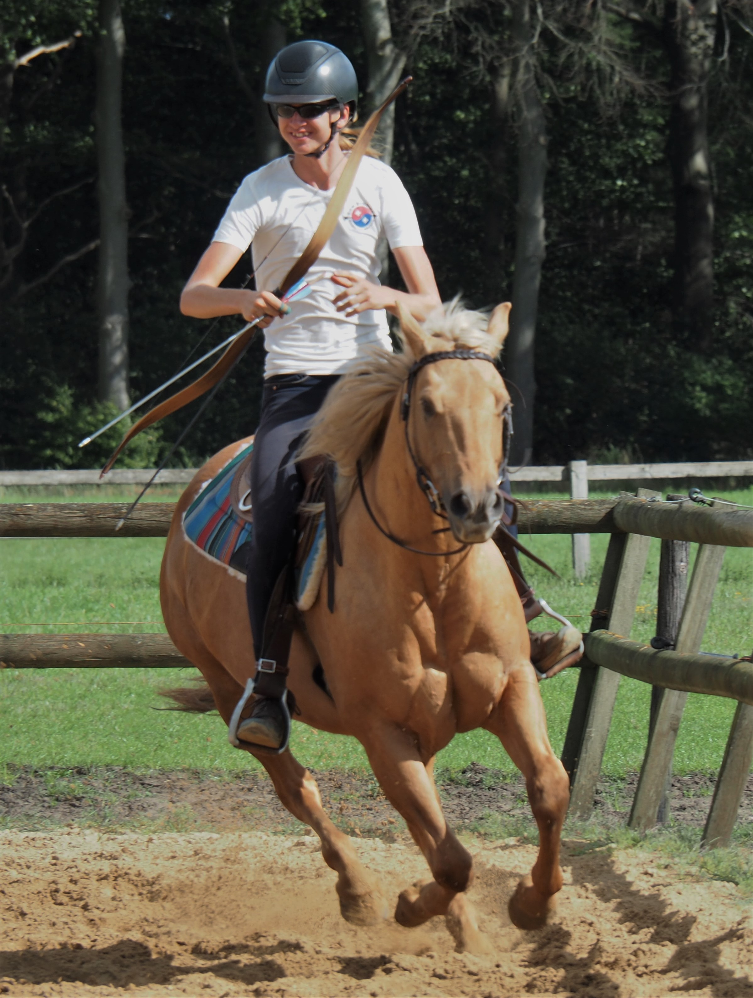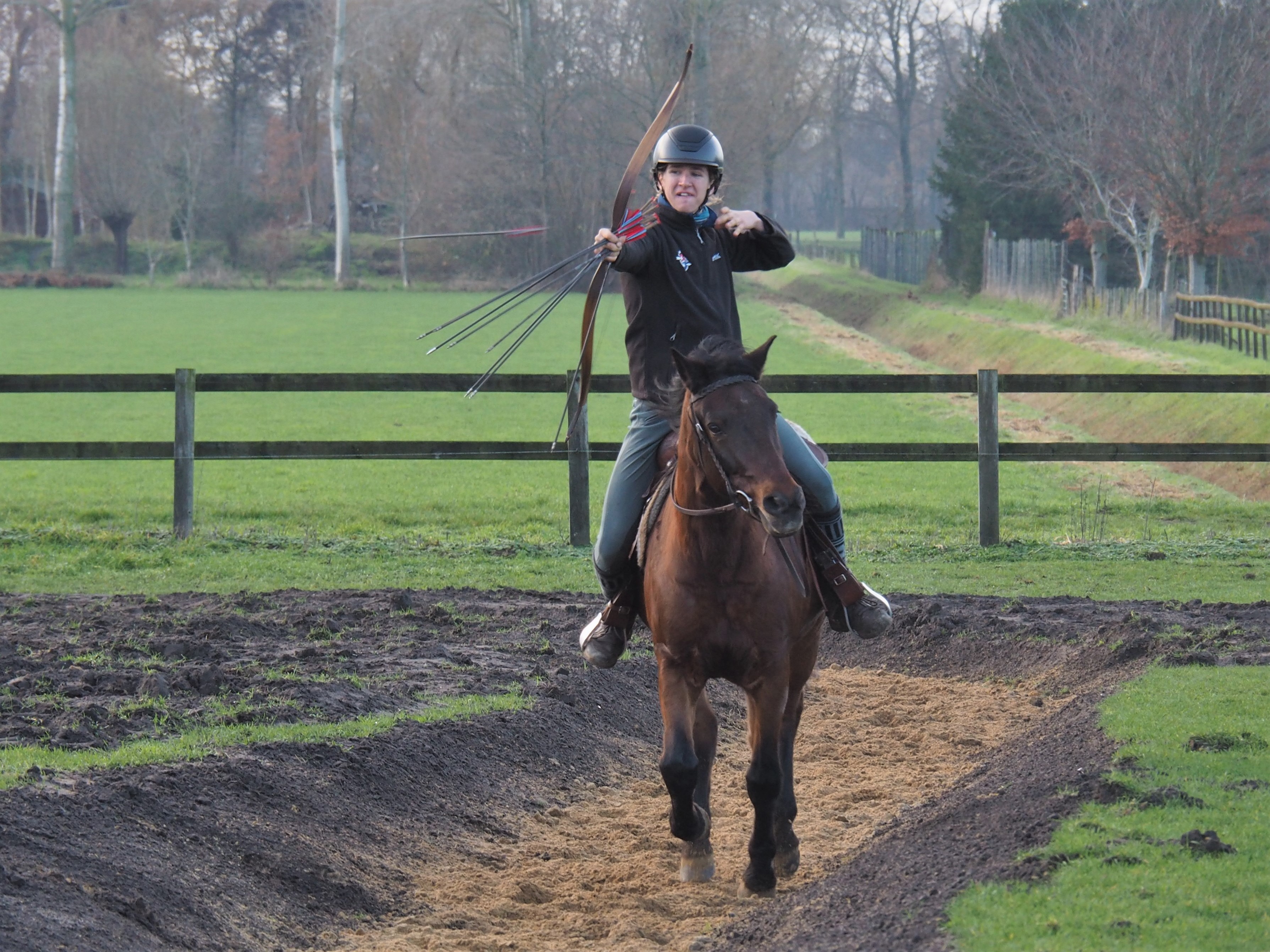 In January 2020 I started riding with Jannet van Wijk on her Arabian horses trained for endurance. She helped me a lot changing my automatic reaction when a horse does something unexpected or when I have the feeling I cannot control the horse anymore. I feel a lot more in control now, while I still know that a horse can always do something unexpected. And of course we sometimes trained horseback archery.