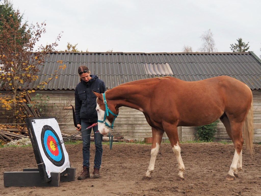 We are training James at a slow pace for horseback archery. Since he is still young and hopefully has a long professional carreer in horseback archery ahead of him, we really want him to fully accept the sport and internalise all things that the sports asks of him before he has to perform.